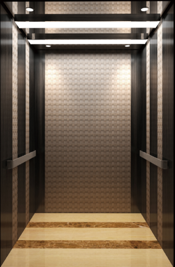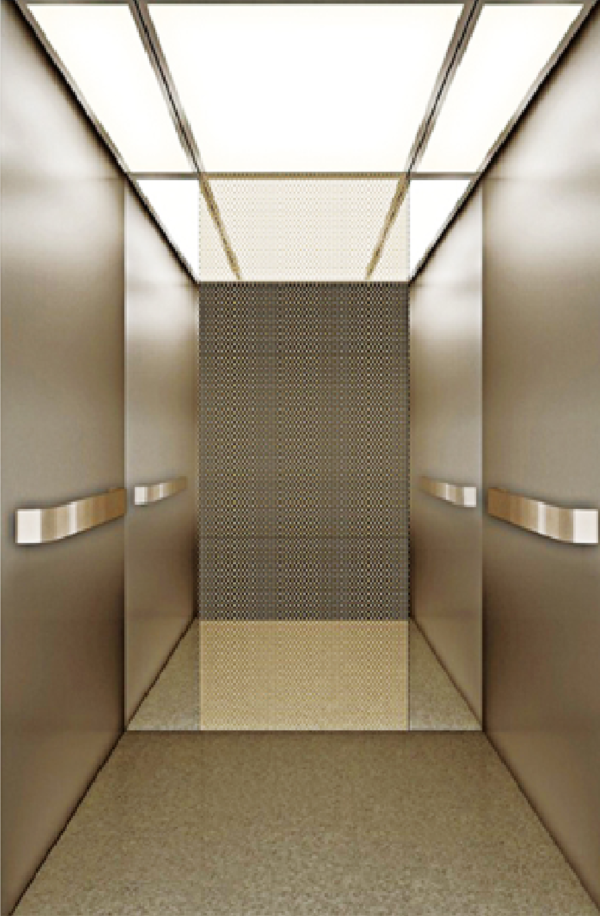 Cabin Side Wall: Champagne Hairline Stainless Steel with Mirror Finished. Cabin Rear Wall: Champagne Hairline Stainless Steel with Mirror Finished.