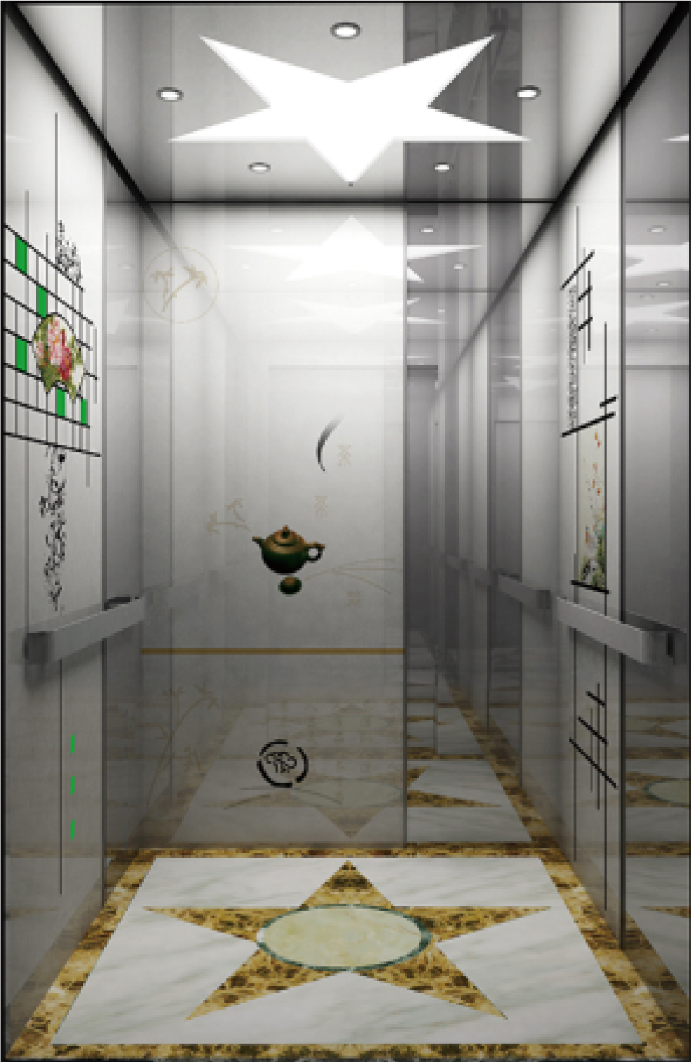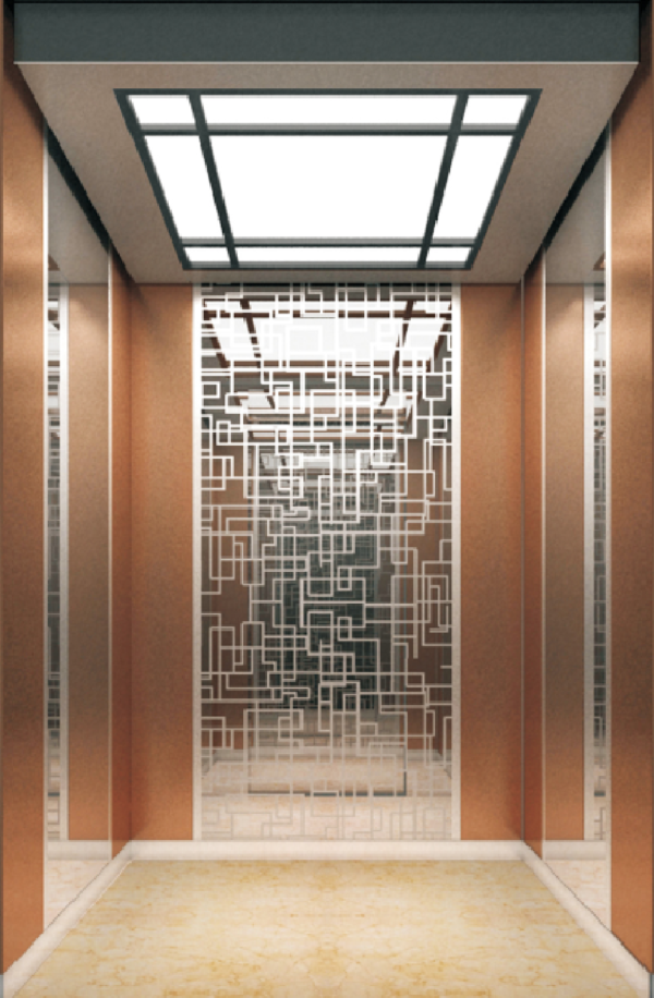 Cabin Side Wall: Stainless Steel with titanium black mirror, solide wood finished. Cabin Rear Wall: Stainless Steel with titanium black